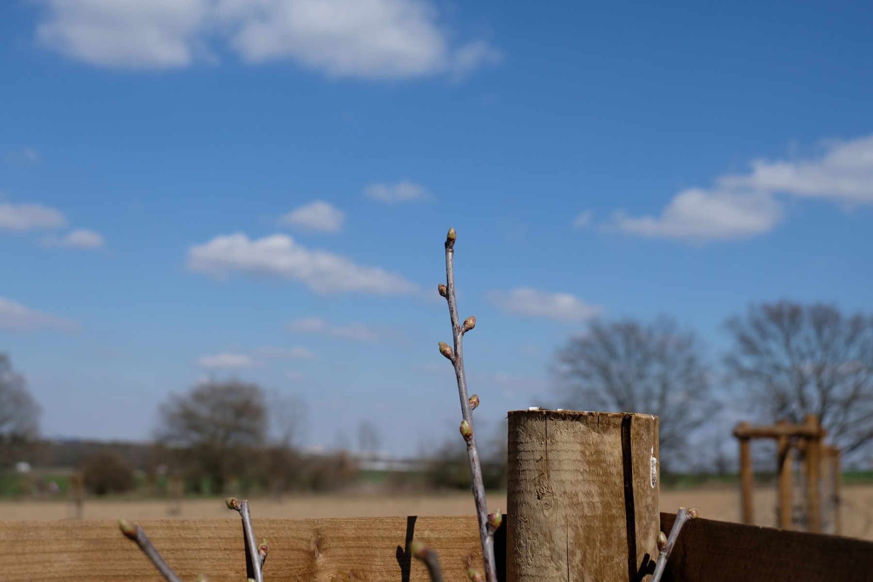 Naše ovocné stromy, vysazené na podzim, začínají pučet a opatrně se objevují nové listy. Zatím to vypadá, že se ujalo 20 ze 21 zasazených stromů. To je super bilance.