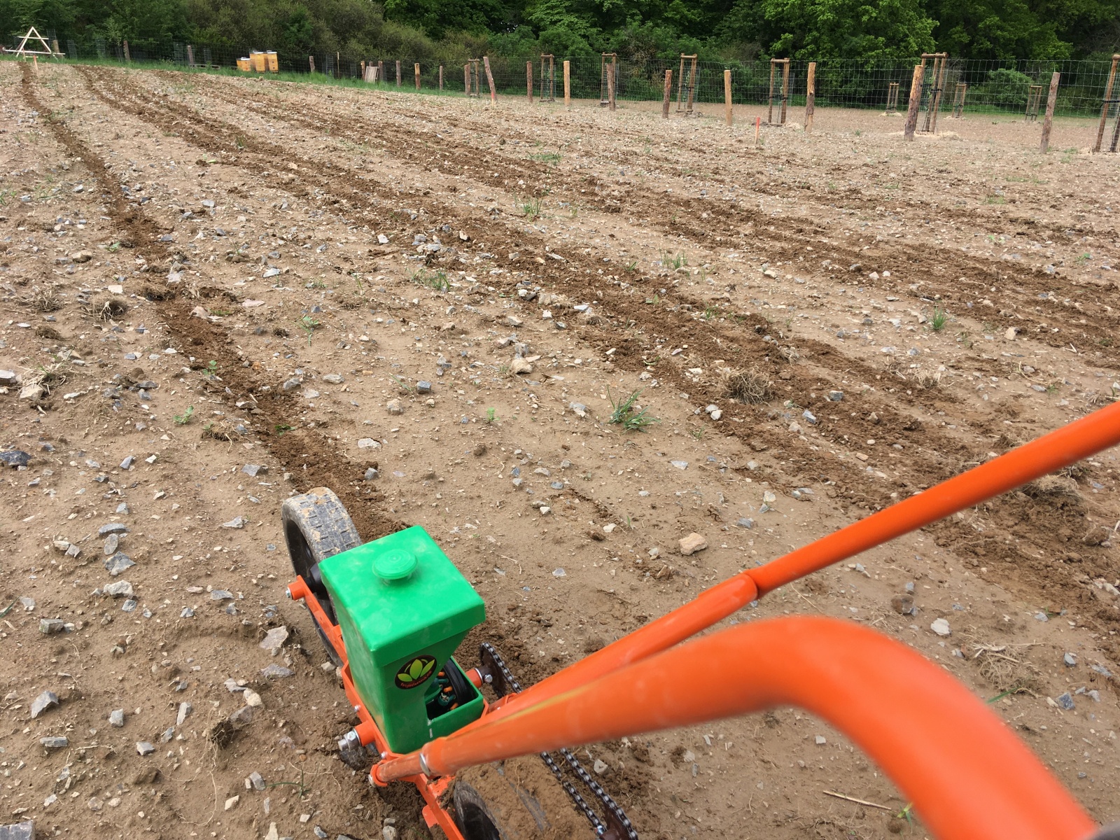 Sotva se natáhlo pletivo k oplocence, nastal čas setí. Navíc nám moc nepřálo počasí a často pršelo. Tak jsme začali sít bylinky a vše ostatní kdykoli, když bylo alespoň trochu sucho a neucpávala se nám ruční sečka mokrou hlínou. Tuto sezónu bereme jako zkušební a testujeme různé byliny a plodiny, kterým se na poli bude dařit. Ze všech zasetých bylin na poli prosperuje hlavně heřmánek pravý, měsíček lékařský, chrpa modrá, dobromysl obecná, divizna velkokvětá, jitrocel kopinatý, kopřiva dvoudomá. Některé byliny sklízíme a sušíme již v takovém množství, že jsme je nabídly k prodeji. Vůbec se nepovedla například meduňka, šalvěj a mateřídouška.