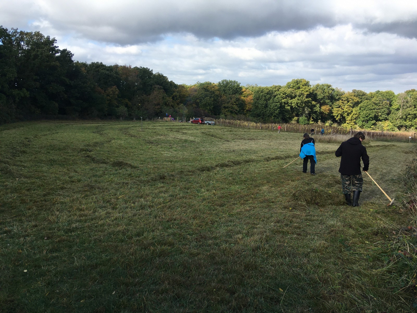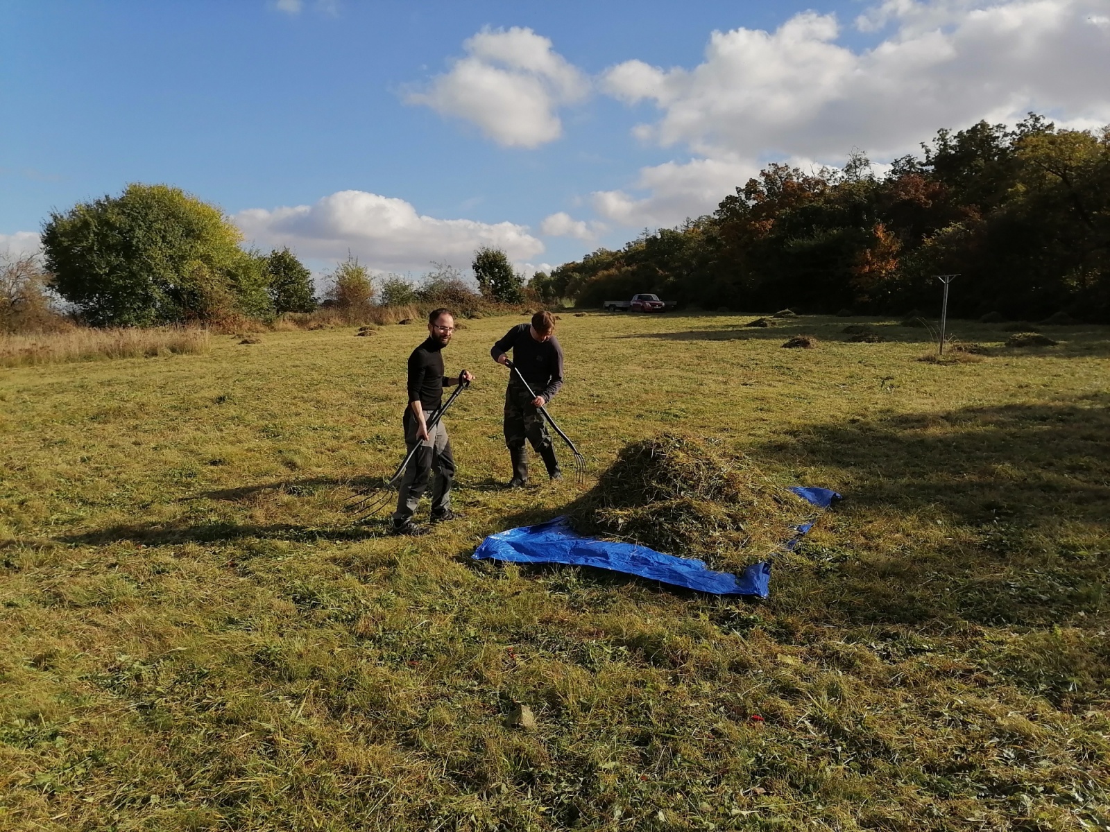 Je podzim a na květnaté louce na poli U dubu se sešlo pár lidí s hráběmi, vidlemi a odhodláním. Co se to děje, nějaká revolta rolnictva? Nebojte, jen přišli společně odklidit posekanou trávu z louky.